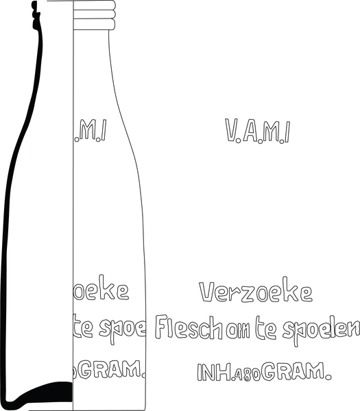 | 5c decoratie | tekst: V.A.M.I. VERZOEKE FLESCH OM TE SPOELEN INH. 480 GRAM |