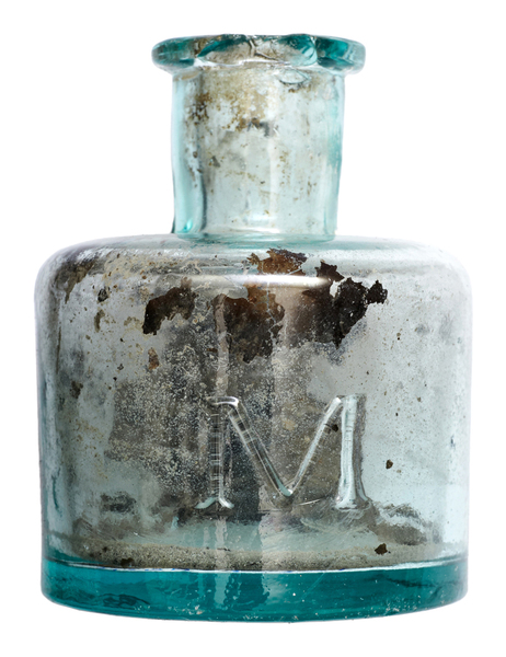| 4b vorm | kleine brede cilindrische inktfles met rechte of licht afgeronde schouder, korte cilindrische hals met verdikte lip, standvlak of standring, vormgeblazen |