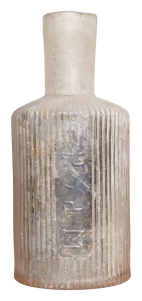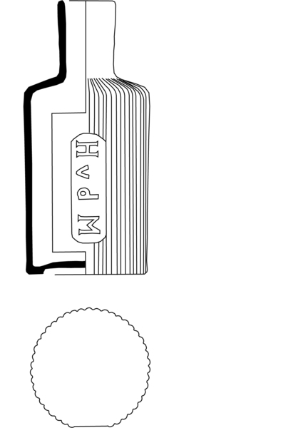 | 4b | kleine dikwandige cilindrische fles met korte cilindrische hals en rechte lip, standring of standvlak, verticaal ribbenpatroon, ook met tekst, vormgeblazen |