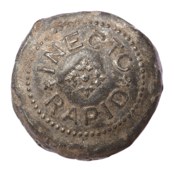 | 5c decoratie | tekst: INECTO, omgevouwen tinnen dop met tekst: INECTO RAPID |