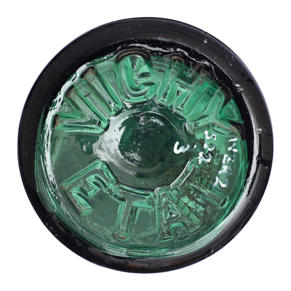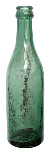 | 4b | cilindrische fles met lange hals en afhangende schouder, cilindrische hals met tweeledig verdikte lip voor kroonkurk, standring, industrieel glas |