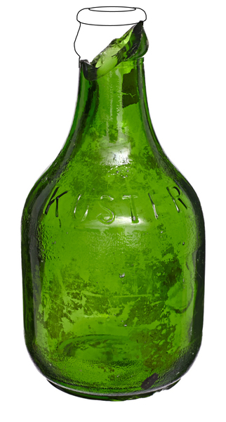 | 4b | korte brede cilindrische limonadefles met halflange hals en kroonkurklip, volautomatisch vervaardigd, standring |