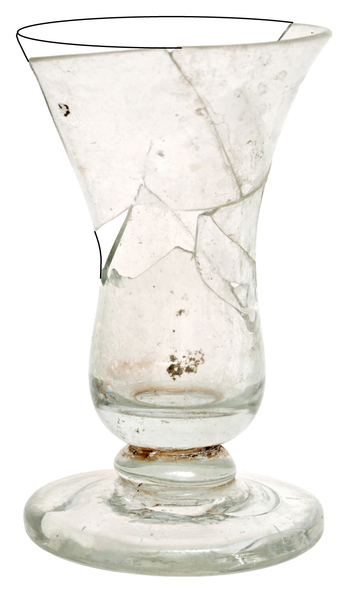 | 4b vorm | conisch kelkglas met korte massieve stam met nodus, op dikwandige schijfvormige voet met pontilmerk |