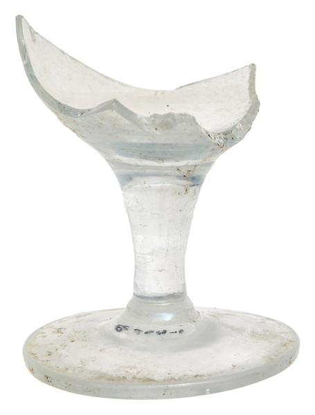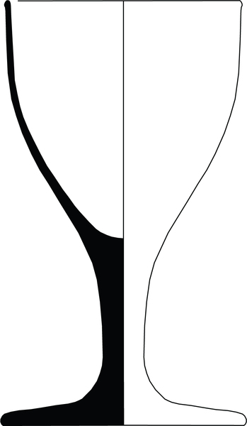 | 4b vorm | toegebogen trechter- of eivormig kelkglas met dikwandige bodem overgaand in rechte massieve stam, ook met luchtbel of spiraalvormige draadversiering, schijfvormige voet met pontilmerk |