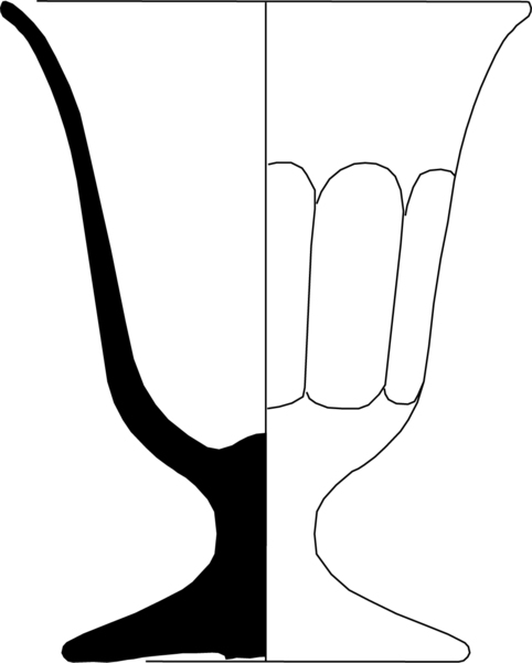| 4b | conisch kelkglas met dikwandige afgeronde bodem en uitstaande lip en verticale afgeronde facetten, massieve korte stam, dikwandige schijfvormige voet |