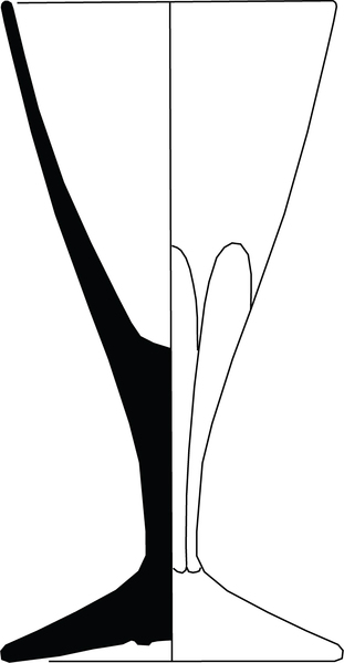 | 4b | trechtervormig glas met dikwandige bodem vloeiend overgaand in massieve rechte stam met afgeronde verticale facetten, schijfvormige voet met pontilmerk |