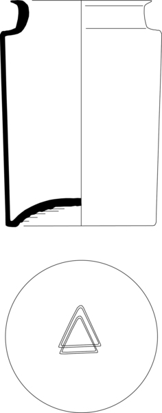 | 4b vorm | brede cilindrische pot met korte conische hals en schuin uitstaande lip, opgebolde bodem, naad op de hals |