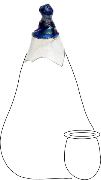 | 4b vorm | kegelvormige vogelkooidrinkbak met ronde knop en draad om de lip, opgestoken bodem met pontilmerk |