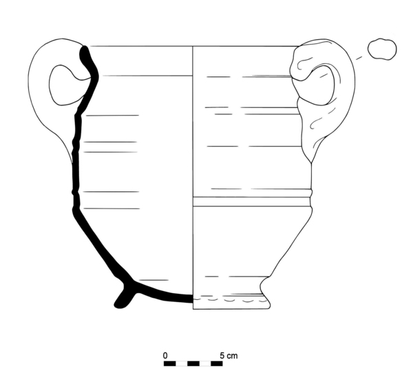 | 4b | hoge drieledige pot met scherpe knikken bodem-wand en schouder, (afgeronde) kraagrand, standring |