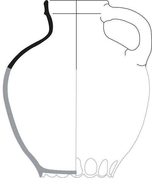 | 4b | bolle kan met hoge schouder met ribbels, cilindrische hals en kraagrand, lobvoeten |