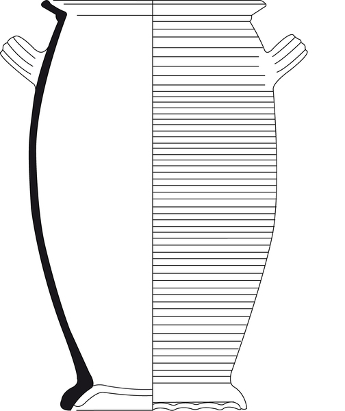 | 4b vorm | hoge, vrijwel cilindrische pot met naar buiten geknikte rand, standring |