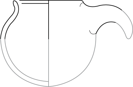 | 4b | kogelronde beker met korte uitstaande rand, met haakoor |