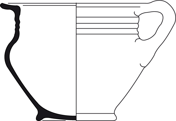 | 4b | bolle pispot met vrijwel cilindrische hals en en uitgebogen tot omgeknikte rechte (aan zijkant aangedrukte) rand, standring |