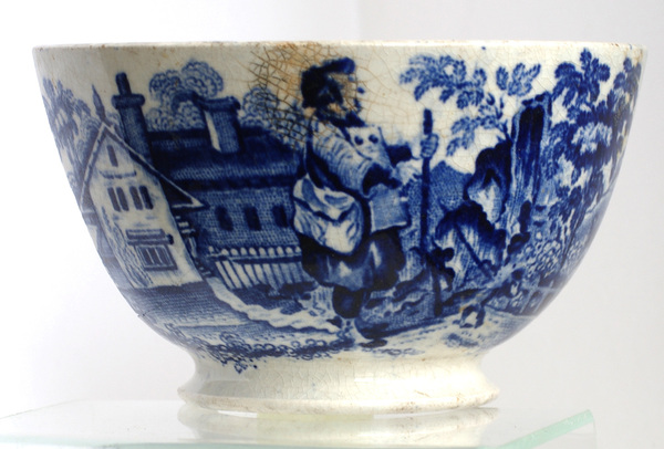 | 5c | blauwe transferprint: landschap met huizen en herder |