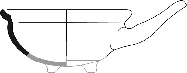| 4b | bolle steelkom met ingesnoerde hals en manchetrand, poten |