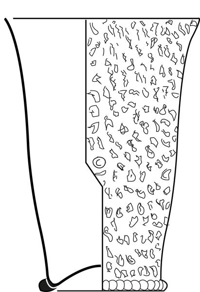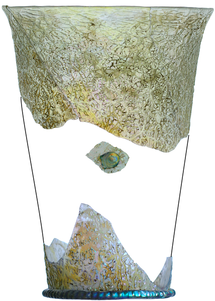 | 4b | cilindrische of licht conische beker met structuur oppervlak (ijsglas) met uitstaande rand, opgestoken bodem met pontilmerk, voetring |