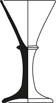 | 4b | trechtervormig, komvormig of conisch kelkglas met afgeronde bodem, langgerekte holle balusterstam, schijfvormige voet met pontilmerk |