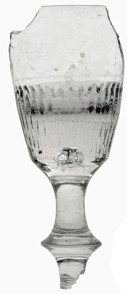 | 4b | conisch kelkglas met dikwandige bodem met verticaal ribbenpatroon, met massieve rechte stam met knoop, dikwandige schijfvormige voet |