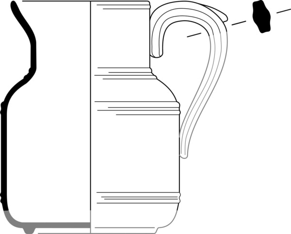 | 4b vorm | cilindrische kan met afgeronde schouder en een smalle cilindrische hals met uitstaande schenklip, geprofileerde banden op overgangen bodem-wand, wand-schouder en schouder-hals, standring |