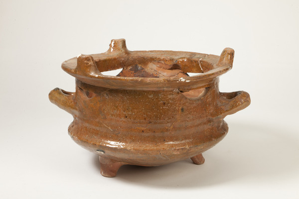 | 5d diversen | four openings in the side, respecitively one on each side of the handles; three nobs on the top of the rim |