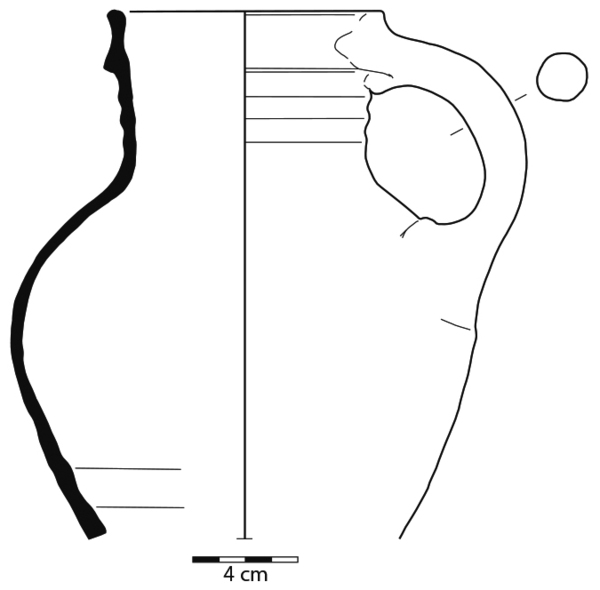 | 4b | bolle kan met hoge schouder, cilindrische hals met kraagrand zonder dekselgeul, lobvoeten |