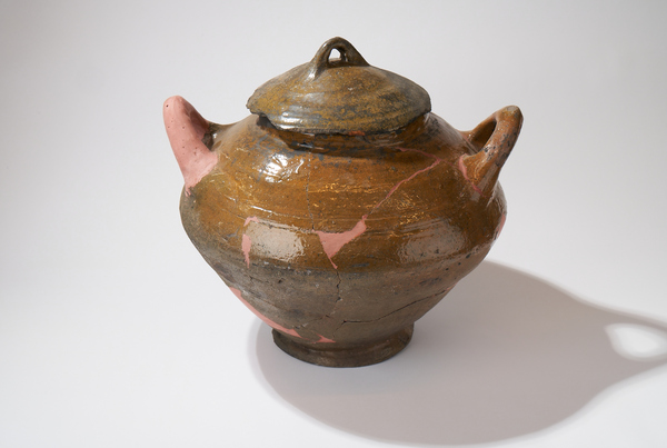 | 5d diversen | matching lid (OK45-45a); the ship went up in flames, therefore the (redware) pottery blackened |