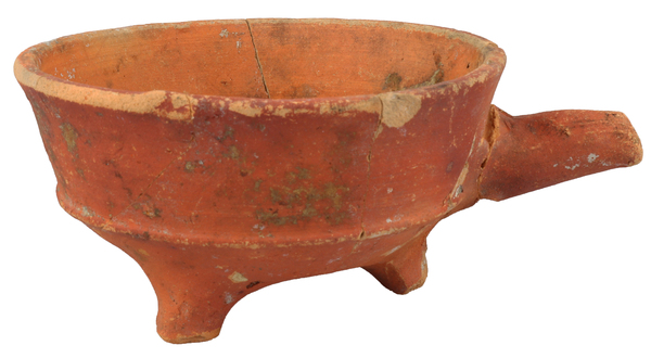 | 4b | ronde vuurtest met scherpe knik bodem-wand en rechte rand, poten |