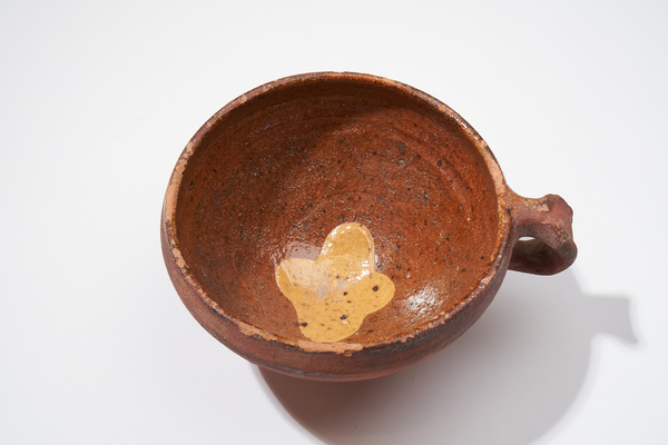 | 5c | gele loodglazuur-vlek op bodem binnenkant (kruisvorm?) |