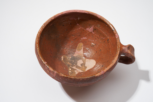 | 5c decoratie | gele loodglazuur-vlek op bodem binnenkant (kruisvorm?) |