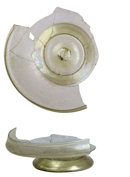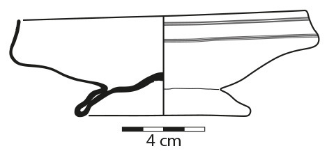 | 4b | ronde schaal, naar binnen staande lip, ingevouwen voet met pontilmerk |