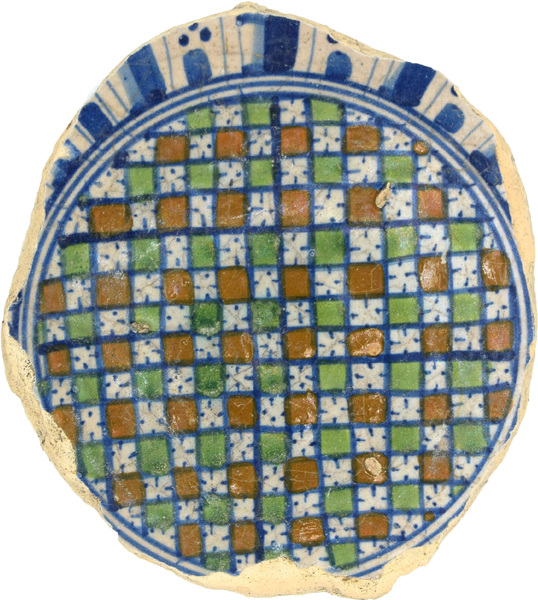| 5c | polychroom beschilderd (blauw, groen, oranje): dambordmotief, nissenrand |