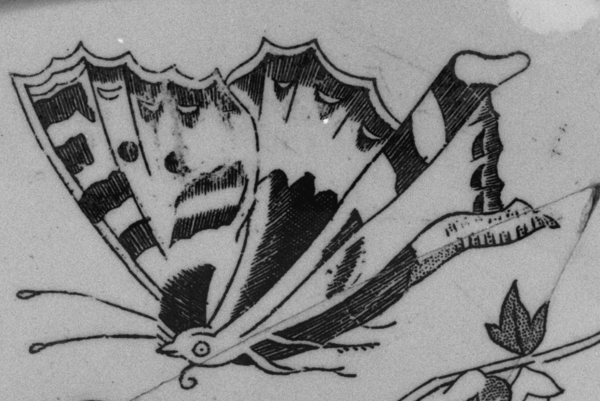 | 5c decoratie | uitwendig: drukdecor in zwart, model: Vlinder zwart |