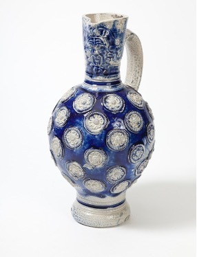 | 5c | Versierde buik met ronde bloemen, leeuwenkop op de hals blauw krul bij ooraanzet |