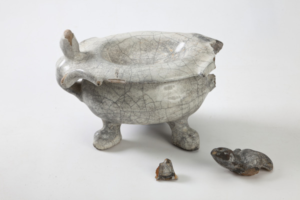 | 4b | bol zoutschaaltje met uitgebogen rand, bolle standvoet met drie pootjes |