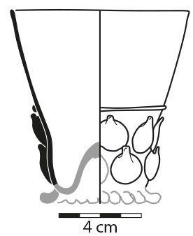 | 4b | berkemeier met conische cuppa die op de overgang naar de conische of cilindrische schacht met draad is afgezet, met twee of meer verspringende horizontale rijen van opgerichte puntnoppen, ook patroonvorm, opgestoken bodem met pontilmerk, geknepen voetring |