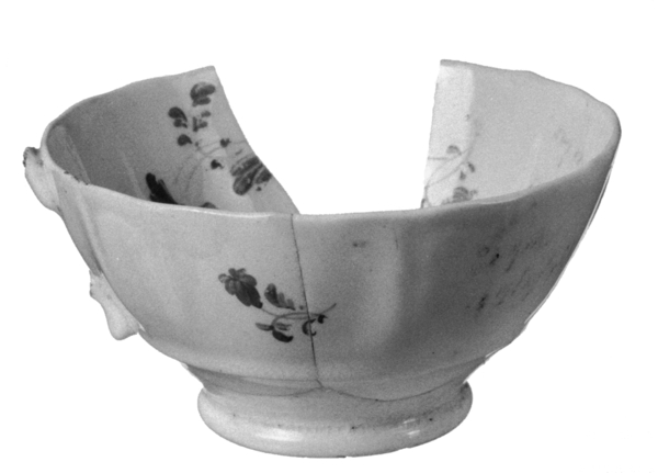 | 5c decoratie | inwendig: bovenglazuur: rozerode bloemen met groene stippen; uitwendig: bovenglazuur: rozerode bloemen met groene stippen rood, groen |