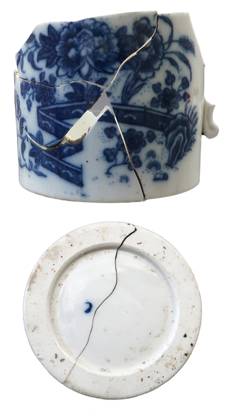 | 5c | blauwe transferprint met bloemen onderglazuur blauw |