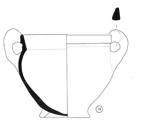 | 4b | wijde pot met hoge schouder en uitstaande driehoekig verdikte rand (kraagrand) met dekselgeul, standring |
