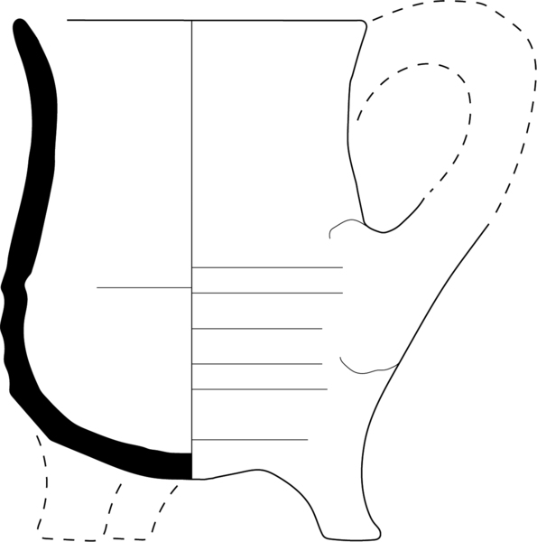 | 4b | hoge grape met afgeronde buik en één of meerdere ribbels op wand, licht uitgebogen rechte rand |