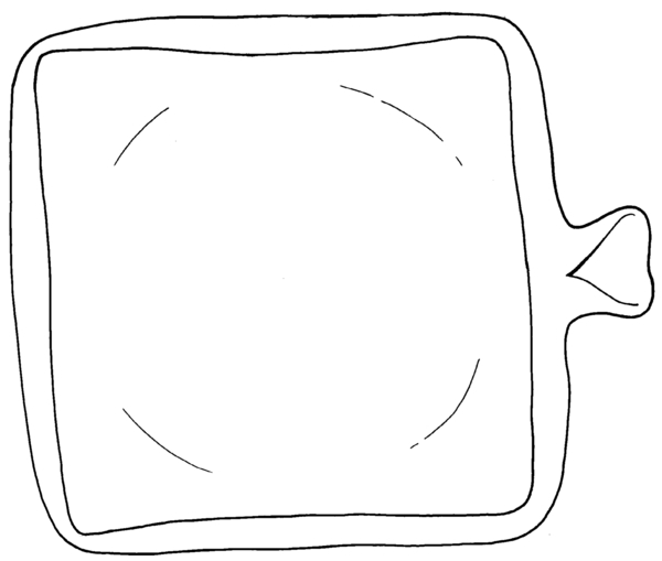 | 4b | vierkante vuurtest met scherpe knik bodem-wand en afgeronde (verdikte) rand, standring |