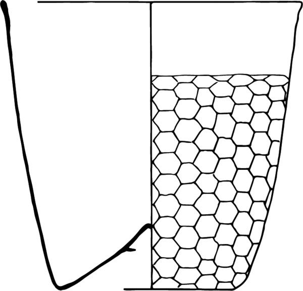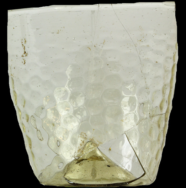 | 4b vorm | cilindrische of conische beker met honingraatpatroon, opgestoken bodem met pontilmerk |