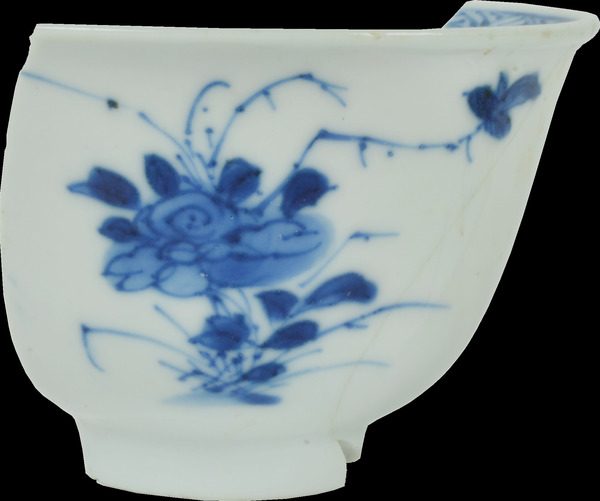 | 5c | vrij open bezetting van bloemdragende struiken op relatief groot wit vlak onderglazuur blauw |