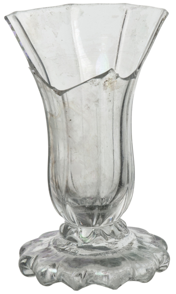 | 4b vorm | trompetormige beker met verticaal ribbenpatroon, dikke geribde massieve voet met pontilmerk |