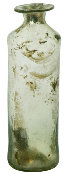 | 4b vorm | lange, smalle cilindrische fles met korte rechte of conische hals en horizontale lip, opgestoken bodem of standvlak met pontilmerk |