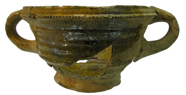 | 4b vorm | diepe bolle kom met ribbel op buik en kraagrand, standring |