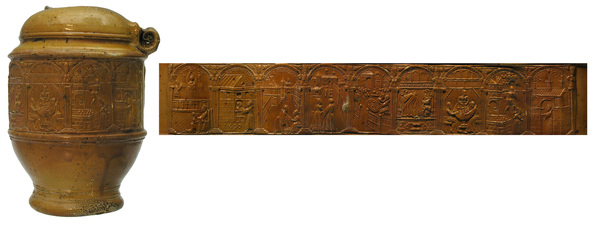 | 5b afwerking (kleur/glazuur) | spaarzaam ijzerengobe met zoutglazuur |
