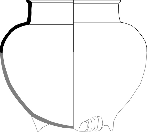 | 4b vorm | bolle voorraadpot met hoge schouder zonder hals, rechtop staande manchetrand, lobvoeten |