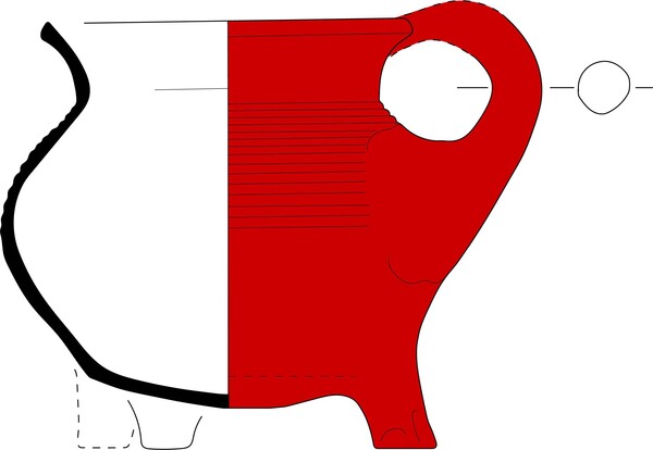 | 5d | pootjes licht gesleten, onderzijde beroet, inwendig schelpkalkmortel; koken en bereiden |