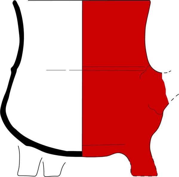 | 4b | hoge grape met afgeronde buik en één of meerdere ribbels op wand, licht uitgebogen rechte rand |