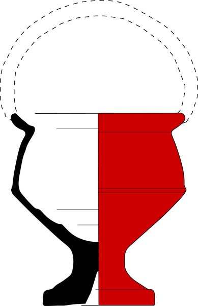 | 4b | bolle mosterdpot met horizontaal geknikte, aan bovenzijde afgeplatte rand, holle standvoet |